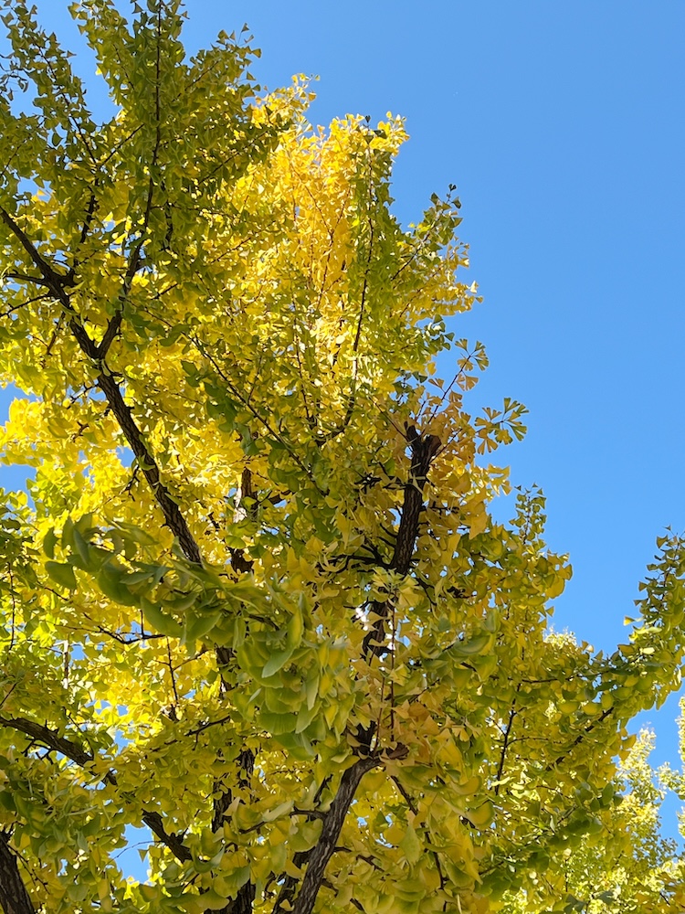 길가의 가로수가 이제서야 그라데이션으로 낙엽이 지기 시작해서 한 컷.