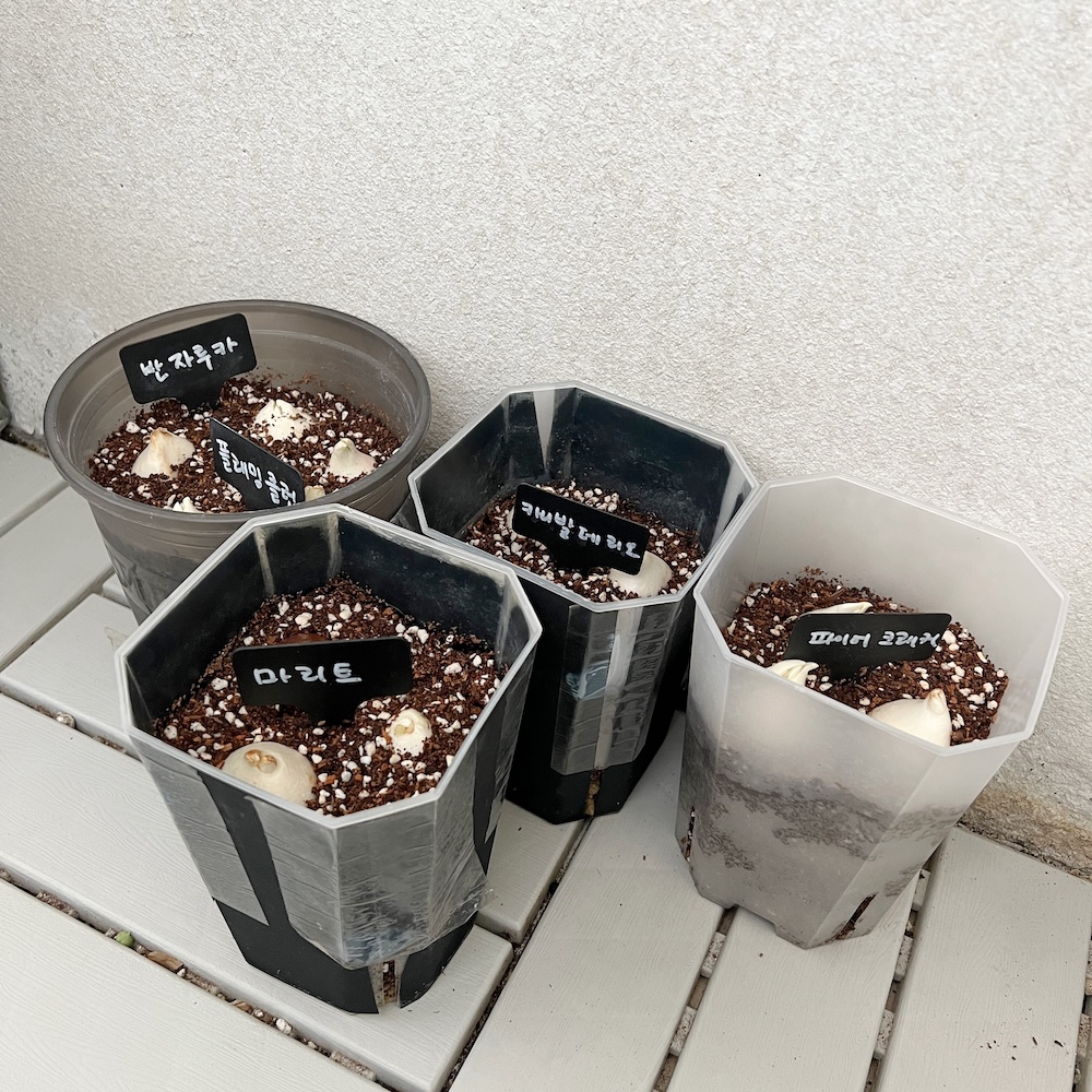 작년에 멋모르고 너무 일찍 심고는 실패할까봐 더 주문했다가 감당 못하게 많아서 이 화분 저 화분에 나눠 심느라 난리를 친 전적이 있었는데, 올해는 내내 날이 더워서 구근 생각도 못 하고 있다가 타임라인 보고 아, 구근 심을 때구나 하고 어쩔까 하다 열 개 남짓만 골라봤다.