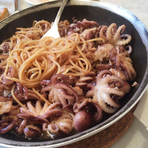 린양이 올리브 오일 스파게티가 먹고 싶다고 해서 시켰는데 정말 쭈꾸미가 엄청 많이 들어있어서 쭈꾸미가 메인, 면은 거들 뿐인 느낌. 마늘과 올리브유로 볶은 거 같은데 간이 딱 맞았다.