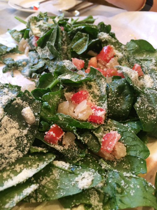 이 집의 대표작 중 하나인 듯한(이 날 시킨 세 가지가 대표메뉴였는지 테이블마다 요리가 비슷비슷하더란) 시금치 피자. 아이들은 날 시금치(?)에 질색했지만 어른들은 맛있게 먹었다.
