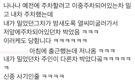 우씽. 학원 앞에 오늘따라 자리가 없어서 빈 데에 어찌저찌 세우고 보니 또 옆차가 지난 주 내가 범퍼 갈아준(…) 그 차인 거 같다. ㅜ.ㅜ