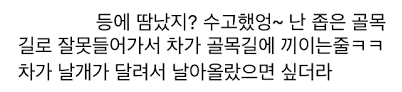 어차피 오늘은 옆사람이 학원 쪽으로 와서 같이 가는 날이라 내가 차 빼서 집에 갈 것도 아닌데 이대로 둬버릴까 진지하게 고민하고 있는데