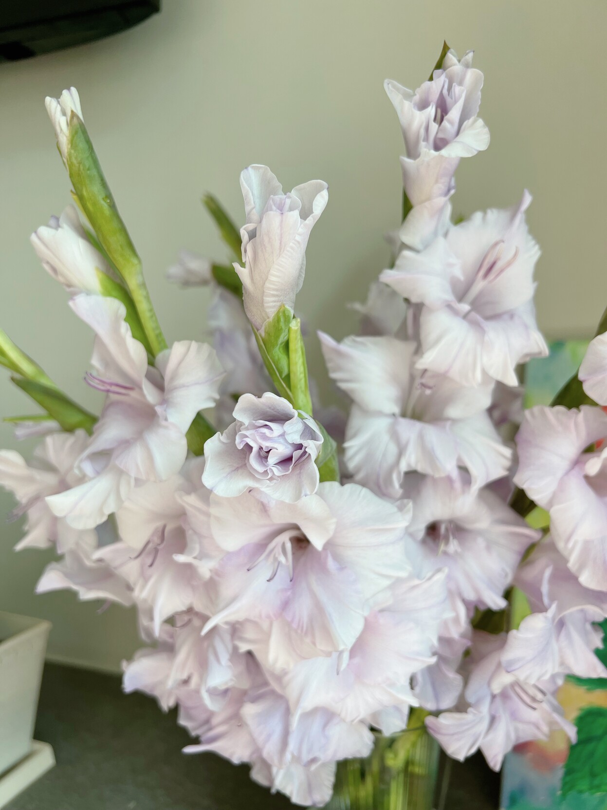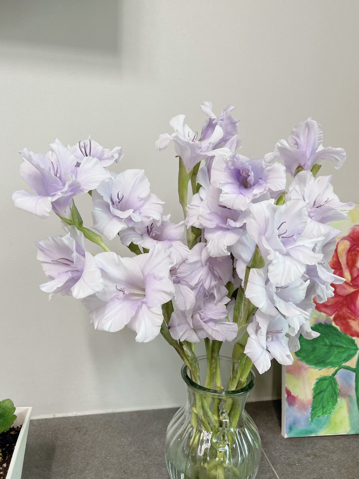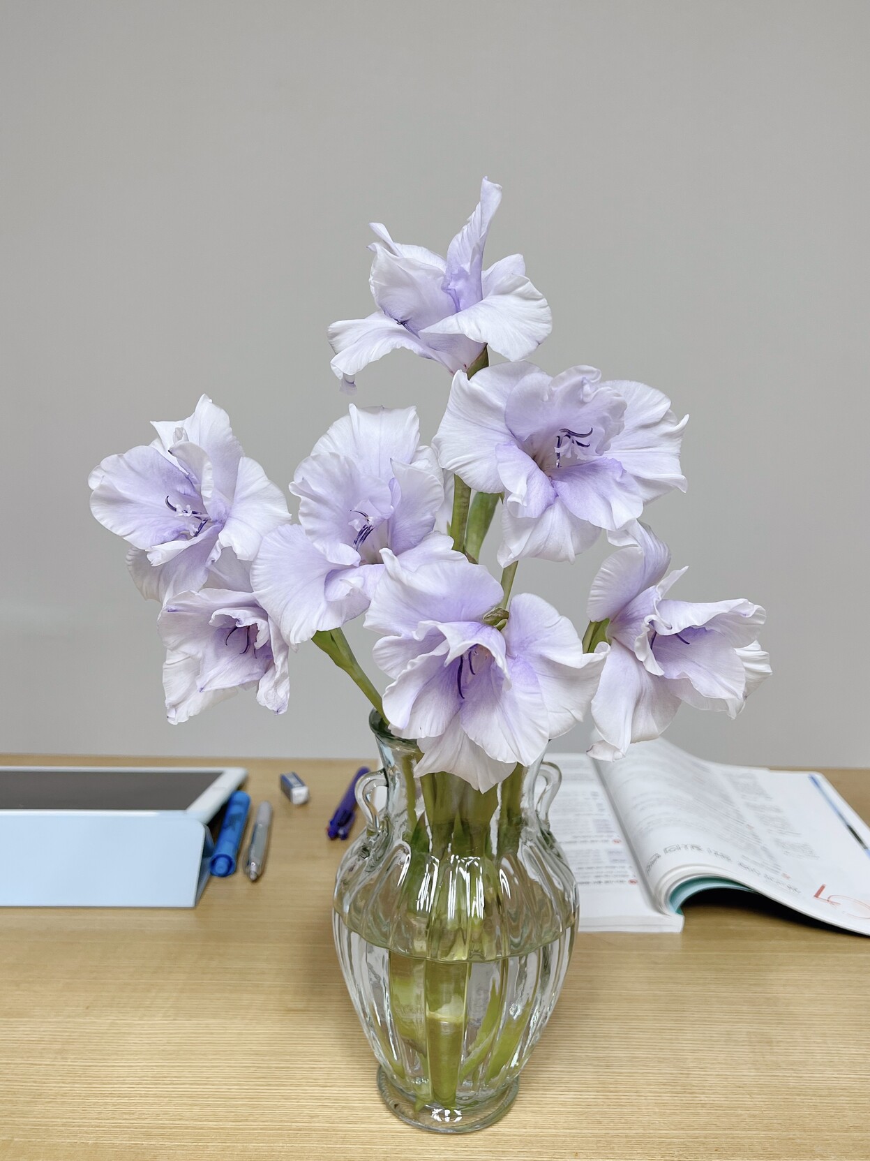 매번 글라디올러스는 코랄색만 사다가 연보라색이 눈에 들어와서 주문했는데 어니스트 플라워 배송 시스템이 바뀌었는지 아래쪽 줄기를 엄청 길게 남겨서 보내줘서 덕분에 물올림도 잘 되고 풍성하게 피어나는 꽃을 한껏 즐길 수 있었다.